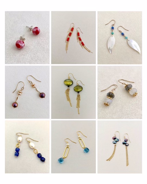 - Earrings – Contemporary, classic, studs with handmade glass beads or pearls, drops, dangles, and hoops.